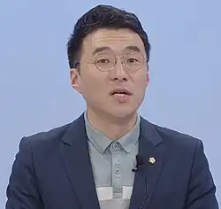 Kim Nam-kuk (Korean: 김남국, born 22 October 1982) is a South Korean lawyer and politician. A person from Gwangju, he has currently been operating Lawyer Kim Nam-kuk Legal Firm.[1][2] He, also one of co-writers of White Paper on Cho Kuk, is widely known for his pro-Cho Kuk views.[3][4][5][6][7]