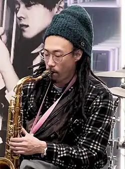Kim Oki (Korean: 김오키) is a South Korean saxophonist, and former breakdancer.[2] He debuted in 2013 with his studio album Cherubim's Wrath (천사의 분노), and has since released numerous projects and albums.[3] He collaborated with various artists including Park Jiha, Lowdown 30, Hippy Was Gipsy, Say Sue Me, and Bek Hyunjin.[4][5] He won the Musician of the Year at the 2020 Korean Music Awards.[6]