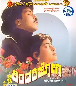 Kindari Jogi (ⓘ) is a 1989 Indian Kannada language fantasy romantic drama film directed, co-written and enacted by V. Ravichandran along with Juhi Chawla pairing together again after the successful previous film Premaloka (1988). The supporting cast features Lokesh, Doddanna and Mukhyamantri Chandru among others.[1]