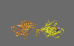 - ^ PDB: 1BG2; Kull FJ, Sablin EP, Lau R, Fletterick RJ, Vale RD (April 1996). "Crystal structure of the kinesin motor domain reveals a structural similarity to myosin". Nature. 380 (6574): 550–5. Bibcode:1996Natur.380..550J. doi:10.1038/380550a0. PMC 2851642. PMID 8606779.