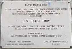 Commemorative plaque in Dieppe of the departure of the Filles du Roy, 1663-1673
