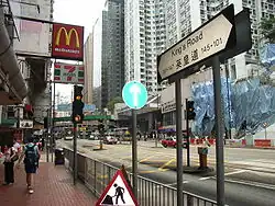 Quarry Bay section of King's Road. North Point Government Primary School is on the left.
