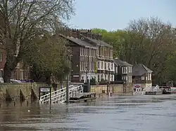 The street remained the city's main quay until the 20th century,[1] and it is currently used by pleasure boats.[5] Its contains some outside dining areas, and most of the buildings are occupied by pubs and restaurants. The street frequently floods, and the floodwater levels are marked inside the King's Arms pub.[6][7]