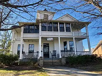 King-Waldrop House, also known as Maple Grove, is a historic home located at Hendersonville, Henderson County, North Carolina. It was built about 1881, and is a two-story, frame dwelling with Italianate and Queen Anne style design elements. It has a one-story rear section and a one-story wing. It features a square three-stage cupola with a concave pyramidal roof and second floor wraparound porch.[2]