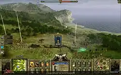 Game play in King Arthur is a mix of real-time strategy, role-playing, and grand strategy elements. The grand strategy portion of the game is played on a large campaign map of Britannia. When a battle is fought, the action changes to a real-time strategy mode. The position of the battle on the large-scale map has minimal effect on the environment of the battlefield (i.e. there are a set number of maps that the player can choose to fight the battle on).