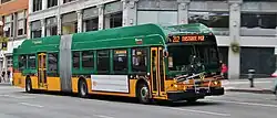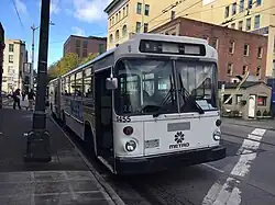 Metro's trolleybus fleet consists of 174 entirely low-floor New Flyer Xcelsior coaches.[20] Of the total, 110 are 40-foot (12 m) vehicles (model XT40) and 64 are 60-foot (18 m), articulated buses (model XT60).[20] The buses include an auxiliary power unit, to allow them to operate off-wire for up to 3 miles (4.8 km).