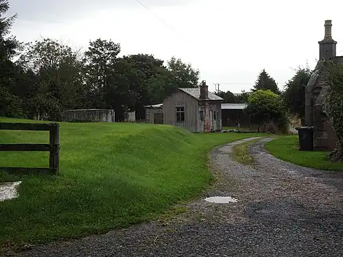 The station had a pedestrian overbridge and a wooden shelter stood on the southern platform.[7] A road overbridge stood over the line to Plaidy. The goods yard was to the south and was approached from that side; it did not have a crane, but a weighing machine was provided. Two sidings were present with a loading dock.[8]