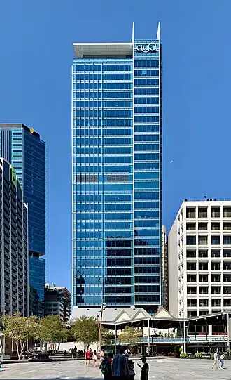 King George Central is a skyscraper in Brisbane, Queensland, Australia. The modern style office building is located next to Ann Street Presbyterian Church in the Golden Triangle and the emerging North Quarter Precinct of the Brisbane central business district in close proximity to the King George Square and Queen Elizabeth II Courts of Law. The building was constructed by Thiess Contractors[1] and completed in 2012.[2]