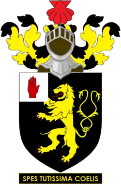 Arms: Sable a Lion rampant doubled-queued Or; Crest: An Escallop Shell Gules; Motto: Spes tutissima coelis (Our safest hope is in Heaven)[1]