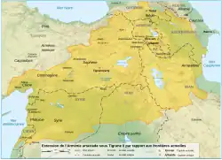 ![]() Armenia at its greatest extent under Tigranes the Great, 69 BC (including vassals) | |||||||||||