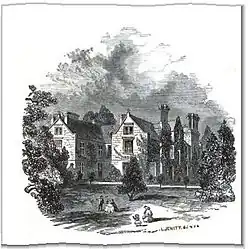 The hall illustrated was built in 1560 and was extensively damaged by fire in 1859.[3] It was fully restored in 1910 by Cecil Paget and his first wife. The illustration is from a book of poetry by local naturalist, John Joseph Briggs, whose poem about the Trent was the title of his poetry book.