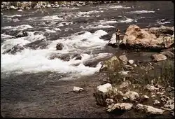 Above Pine Flat Dam, the Kings River holds native rainbow trout as well as introduced brown trout and smallmouth bass; the Upper Kings is designated a "Wild Trout Water" by the California Department of Fish and Game. Rainbow trout are also present in the river below the dam; however, the installation of a hydroelectric plant at Pine Flat Dam in 1984 diminished the cold water supply in the reservoir and deteriorated rainbow trout habitat as a result.[53] In 1999, the state of California implemented the Kings River Fisheries Management Program, which has helped recover the fishery by mandating a minimum cold water pool of 100,000 acre-feet (0.12 km3) in Pine Flat Reservoir, and enforcing angling restrictions. Other fish species in the lower Kings include native Sacramento pikeminnow and Sacramento sucker (also present in smaller numbers upstream), and introduced species such as common carp, channel catfish and striped bass.[54][55]