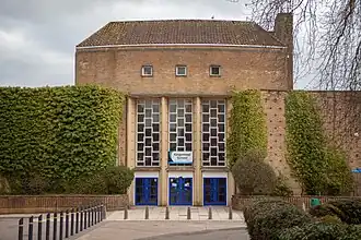 The original block at Kingsmead was modelled in a late Art Deco style, hence its similarities in appearance to a mid-century-modern cinema. The main part of the school (including the hall, gymnasium, canteen, science labs, library, cloakrooms and classrooms) was built during the early 1950s, when a rise in the number of children in post-war Britain (also known as the "baby boom" era) lead to a demand for more schools across the country. The main block was extended at either ends during the 1970s, and during this period a second block (now the Language College) was constructed. A sports hall was built to the rear of the school next to the staff car park during the early 1990s, along with several new offices for senior management near the drama studio. The second most recent significant development is the "south block", a million pound construction with 7 new classrooms and an ICT room; opened September 2006.[4] The infrastructure of the school was never designed for nearly 800 pupils, so the school relies on the field to the back of the school during the summer months for pupils at break and lunchtime.