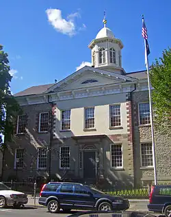 - Ulster County Courthouse, 285 Wall Street. One of the oldest extant county courthouses in the state, this Federal style stone structure was built in 1818 on the site of an earlier courthouse, parts of which remain in the foundation. The cupola was added in 1837.[1]