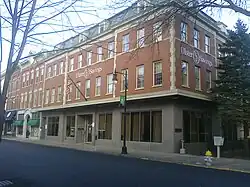 The city and preservationists were able to work together on one project, the restoration of the 1899 Kirkland Hotel at Clinton Avenue and Main Street in the southeast corner of the district. A rare example of a wood-frame urban hotel,[32] it had been vacant since the 1970s. Several owners since then had tried to at least reopen a restaurant in the hotel's basement, but had made no progress beyond repainting the exterior.[33]