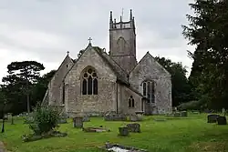 The Church of England parish church of St Michael is Grade II* listed.[13][14] The rubble stone church has a west tower and a small chancel; in between, the nave and the wide north and south aisles each have a gabled roof.[13] There is evidence of a 12th-century church in the wide chancel arch (much restored) and in the jambs of the south doorway, which have carved capitals.[15][16]