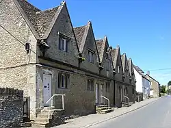 Near the south end of the main street, Home Farmhouse is late 17th or early 18th century.[28] Further north, a row of six almshouses was built in 1675 for Isaac Lyte of Easton Piercy.[29]