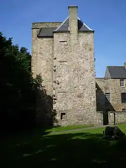 Regent Lennox damaged the house in May 1570 with gunpowder and spoiled the lands after the assassination of Regent Moray at Linlithgow by a Hamilton.[28] Lennox was assisted by an English force commanded by William Drury and they also burnt houses at Pardovan, Binny, and Kingscavil.[29]