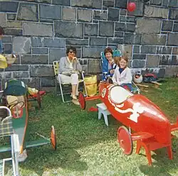 In 1938 the Kinsmen Club of Montreal discussed plans to conduct its own soap box race, the first one for Montreal,[7] as a means of raising charitable funds for under-privileged children in the city's poorer neighborhoods. An ophthalmological ward at a hospital was required, with the intention of offering free eye exams for the kids, and the idea was to raise funds from various groups and individuals that would be willing to sponsor contestants in the race.[8][9] Race preparations were made to help boys that needed various items like axles and wheels,[10] items they could not manufacture themselves, and a budget of no more than $10 with which to construct the car body was set, although most entrants seldom went over $1.[9]