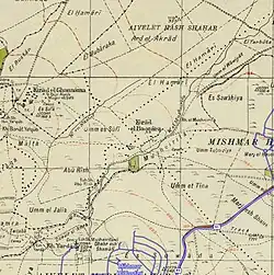 1870s map 1940s map modern map 1940s with modern overlay mapA series of historical maps of the area around Kirad al-Baqqara (click the buttons) | |