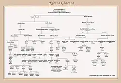 This tree details the hereditary lineage of the Kirana Gharana based on several documented accounts.[11]