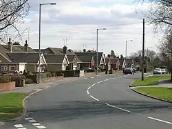 In the 1930s the village began to grow substantially, with new housing developments, much of it semidetached or detached houses with large gardens. New estates were established on Beverley Road leading to Anlaby; on West Ella Road; far along Packman Lane leading to Riplingham, and centred around new roads such as West Ella Way; Westland Road; Elms Drive; Redland Drive; Fairfield Avenue; and St Andrews Mount. By the 1940s the new houses greatly outnumbered the dwellings that had existed up to the 1920s.[53] In the post Second World War period further, during the 1950s to 1960s housing growth of a similar type took place, including new streets and estates on The Vale and South Ella Way off Mill Lane and at Wolfreton Garth.[54] Further infill housing and expansion of housing to the south took place in the next decade, so that by the end of the 1970s an area of around one mile (1.5 kilometres) square was completely urbanised, and the development was contiguous with both the expanded villages of Willerby and Anlaby to the north and east. In this period South Ella was built over, and a new large school established (Wolfreton Upper School), south of South Ella Way.[55] The extent of urban growth had reached a near peak, though further housing was built in the last years of the 20th century at the northern edge of the village, around Glenfield Drive; and eastwards at St Julian's Wells; as well as minor infill developments.[56]