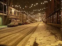 Kirkegata (Norwegian: Church Street) is the main street of the town of Levanger which is located inside Levanger Municipality in Trøndelag county, Norway. The street is parted on the middle by Øverparken with the famous fountain and the town square, referred to as "Torget" by locals. The current/"modern" street plot of Levanger was laid out by the Swedish king Carl III in the early 19th century.