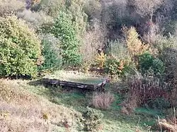 Emergency Meadow is a sculpture of a Victorian Handcart that forms part of the Irwell Sculpture Trail. It was designed by Melissa Hunt and constructed in 2015 under the bridge that replaced Woolfold Viaduct. It is only sewn with white flowers as a tribute to Olives Paper Mill, which was situated nearby.[18] Today, its upkeep has been minimal, resulting in the bed becoming overgrown.