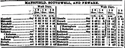 Shortly after opening the timetable comprised 3 trains from Mansfield to Lincoln per day, and 4 trains from Lincoln to Mansfield.