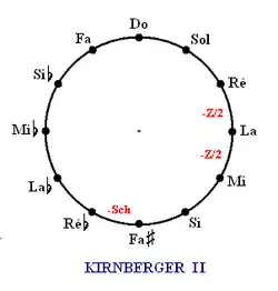 Kirnberger II temperament; Z/2 marks a tempered fifth flattened by a half comma; −Sch marks a schisma