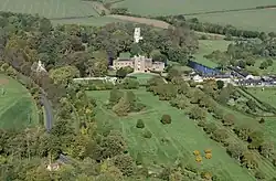The castle went into decline after 1691 and by 1735 the Victoria County History of the castle describes the property as being "in disorder".[1] Much of the castle was pulled down in 1748 in order to make the remainder habitable for Lord Elibank, but the property went into decline again after his death in 1762.[1] By the 1770s it was unhabitable and most of the castle was pulled down in 1801.[1] In the 1830s the gatehouse was turned into a residential property and was renamed Kirtling Tower; an extension was built in 1872 and the house remained in use under a sequence of tenants.[1]