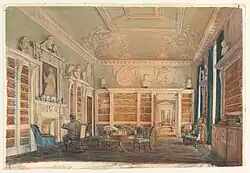 The Dashwoods had already moved in 1745, but Kirtlington Park was still not completed when Sir James Dashwood passed away in 1779.[13][12] Some parts of the house were left unfinished until the 1820s as his son Sir Henry Dashwood, 3rd Baronet gambled excessively with his cousin the sixth Duke of Marlborough. The Saloon and the main staircase were eventually completed by his son Sir George Dashwood, 4th Baronet.[14]
