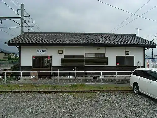Kitasuzaka Station is a station on the Nagano Electric Railway Nagano Line and is 15.0 kilometers from the terminus of the line at Nagano Station.