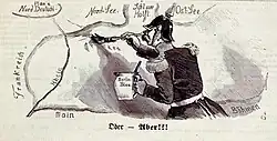 Kladderadatsch (German pronunciation: [kladəʁaˈdat͡ʃ]; lit. 'Chaos') was a satirical German-language magazine first published in Berlin on 7 May 1848.[1] It appeared weekly or as Kladderadatsch put it: "daily, except for weekdays." It was founded by Albert Hofmann and David Kalisch, the latter the son of a Jewish merchant and the author of several works of comedy.[2] Publication ceased in 1944.