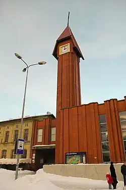 Klaipėda railway station (Lithuanian: Klaipėdos geležinkelio stotis) is a Lithuanian Railways station in Klaipėda. It is located at the northern part of the old town of the city. The current building was built in 1983. "Railroad station - a facility comprising ticket office, platforms, etc. for loading and unloading train passengers and freight".[1]