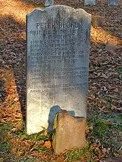 Gravestones of Peter Becker, the larger of which was placed in 1886