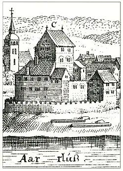 The construction of the castle, originally the seat of the Klingen family, was started in 1240. Until 1269 a manor house stood on the grounds. After 1331 the outer walls were added. In the second half of the 14th century the Bishop of Constance was often a resident in the castle. He ordered further improvements and expansions. In the late 16th century, the castle, which was the seat of the bailiff from Constance, in such bad condition that the Swiss Confederation demanded a renovation from the bishop. In 1804 the castle went to the newly formed Canton of Aargau, who auctioned it off in 1817. As a result it has been used by various industries, until the 20th century when it was taken over by a foundation.[1]