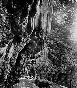 The Chapel of Our Lady of the Crag on Abbey Road is a Grade I listed shrine dedicated to the Virgin Mary.[18] It was built in 1408 by John the Mason after his son, who was presumed dead in a rockfall in a local quarry, was found alive, with the son's escape having been attributed to the mason's frequent prayers to Mary.[19]