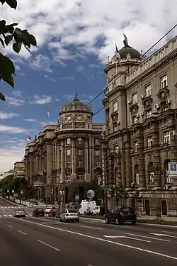• Intersection with Nemanjina; Building of the Government Building; projected by Nikolay Krasnov, built 1926–28, upgraded in 1938. Originally, the Finance Ministry.[20]