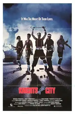 Knights of the City (originally Cry of the City) is a 1986 action adventure film starring Leon Isaac Kennedy, Nicholas Campbell, John Mengatti and Janine Turner. It was directed by Dominic Orlando and written by Leon Isaac Kennedy. Mobster Michael Franzese was a producer on the film.