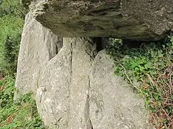 The Knockeen Portal Tomb is a megalith in Knockeen, County Waterford, Ireland. It is the largest dolmen (portal tomb) in County Waterford exhibiting a double capstone configuration, though it is not the tallest standing stone structure. It is one of the finest examples of a dolmen in Ireland.[2]