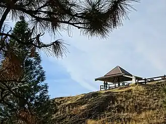 Knox Mountain Park is a natural park and recreation area located in Kelowna, British Columbia, north of the city's core. It is one of the most popular attractions for tourists visiting Okanagan Valley. Apex Trail is a 4.0 kilometre, lightly trafficked out-and-back trail, best used from May till September[1] The park is made up of 235 hectares (580 acres) of forest and grassland and contains a variety of wildlife, such as deer, birds, an occasional grizzly bear[2] and Kokanee salmon that spawn along the lakeshore adjacent to the park.[3]