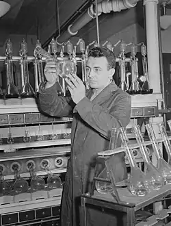 Other companies that sprang up during this period were Knoxville Woolen Mills, Dixie Cement, and Woodruff's Furniture. Between 1880 and 1887, 97 factories were established in Knoxville, most of them specializing in textiles, food products, and iron products.[49] By the 1890s, Knoxville was home to more than 50 wholesaling houses, making it the third largest wholesaling center by volume in the South.[49] The Candoro Marble Works, established in the community of Vestal in 1914, became the nation's foremost producer of pink marble and one of the nation's largest marble importers.[50] In 1896, Knoxville celebrated its achievements by creating its own flag.[51] The Flag of Knoxville, Tennessee represents the city's progressive growth due to agriculture and industry.[52]