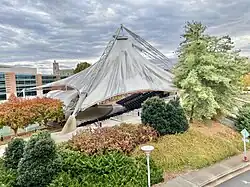 With further annexation attempts stalling, Knoxville initiated several projects aimed at boosting revenue in its downtown area. The 1982 World's Fair—the most successful of these projects, with eleven million visitors—became one of the most popular expositions in U.S. history.[60] The Rubik's Cube made its debut at this event.[61] The fair's energy theme was selected because Knoxville was home to TVA's headquarters and for its proximity to Oak Ridge National Laboratory. The Sunsphere, a 266-foot (81 m) steel truss structure topped with a gold-colored glass sphere, was built for the fair and remains one of Knoxville's most prominent structures,[62] along with the adjacent Tennessee Amphitheater.