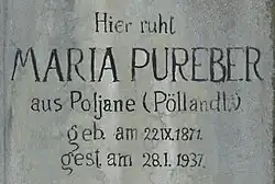 Pöllandl was a village settled by Gottschee Germans inside the Gottschee region until 1941. During the Second World War its original population was resettled by the German authorities. However, some Gottscheer families managed to resist and prevent expulsion, and most of these collaborated with the Partisans of the Liberation Front of the Slovene People, which had a base (Baza 20) nearby. Their dialect Gottscheerish was forbidden after World War II, and so today there are only a few people left that speak it.[8][9]