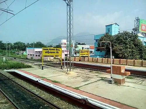Kodai Road railway station (station code: KQN) is an NSG–5 category Indian railway station in Madurai railway division of Southern Railway zone.[1] It is a railway station in Tamil Nadu state, India, lying between Dindigul and Madurai at 10°10′45″N 77°54′34″E / 10.17917°N 77.90944°E / 10.17917; 77.90944. It is formally listed as Kodaikanal Road (railway station code KQN).