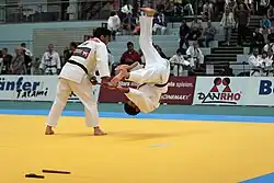 Most of the techniques tori uses for defence are considered illegal in judo competitions (shiai) and randori, and are therefore not known to many judoka. Beside the strikes, the wrist locks kote-hineri and kote-gaeshi belong to those techniques, which are two common known aikido techniques.