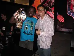 In September 2006, he signed a developmental contract with World Wrestling Entertainment (WWE) and was assigned to Deep South Wrestling (DSW), a Georgia-based developmental federation. He debuted in the new company, as Kofi Nahaje Kingston, in a dark match loss to Montel Vontavious Porter on September 21.[20] For the rest of 2006 and the beginning of 2007, he appeared in DSW, as well as its Kentucky-based sister promotion Ohio Valley Wrestling (OVW), where he was in a tag team dubbed the Commonwealth Connection with Harry Smith.[21][22][23]