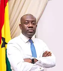 Kojo Vincent Oppong Nkrumah (born 5 April 1982) is a Ghanaian politician and lawyer.[3][4][5] He is the member of parliament for the Ofoase-Ayirebi constituency.[6][7][8] He previously served as the Minister of Information from November 2018 and later as the Minister for Works and Housing during the NPP tenure of office.[9][10]