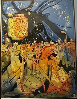 The Kokoon Arts Club, sometimes spelled Kokoon Arts Klub, was a Bohemian artists group founded in 1911 by Carl Moellman, William Sommer and Elmer Brubeck to promote Modernism in Cleveland, Ohio.[1][2] Moellman had been a member of New York City's Kit Kat Club, which served as inspiration for Kokoon. From 1913 to 1946 Kokoon's annual Bal-Masque balls scandalized Cleveland with risqué activities, provocative art, and nudity, and was sometimes humorously referred to as the "Cocaine Club". A fierce rivalry stood between Kokoon and the more conservative Cleveland Society of Artists.